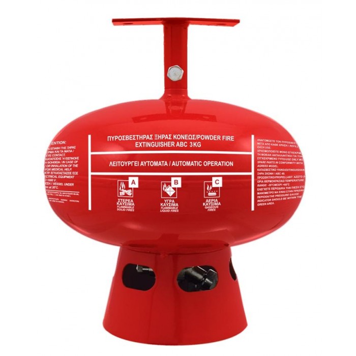 Πυροσβεστήρας Οροφής Ξηράς Σκόνης 3Kg ABC 40% με πιστοποιημένο κατά CE Σπρίνκλερ και ασφαλιστικό.