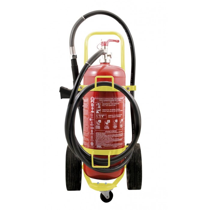 Τροχήλατος Πυροσβεστήρας, 50Lt Αφρού AFFF 6%, με Λάστιχο Εκτόξευσης Υλικού 5 μέτρων. Δοχείο με εσωτερική αντιδιαβρωτική προστασία. Με κλείστρο με Βαλβίδα Ασφαλείας Μανομέτρου.
